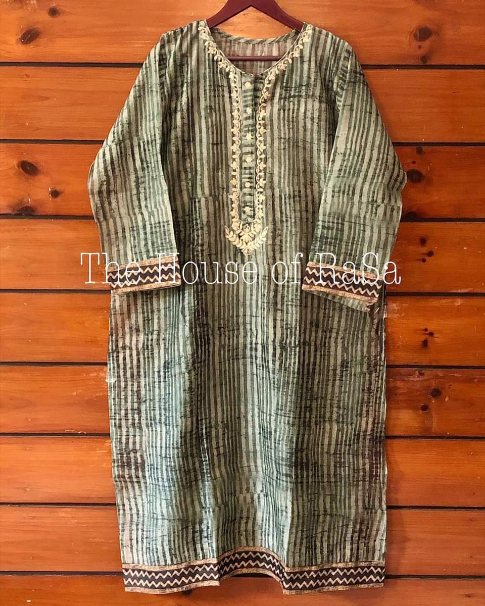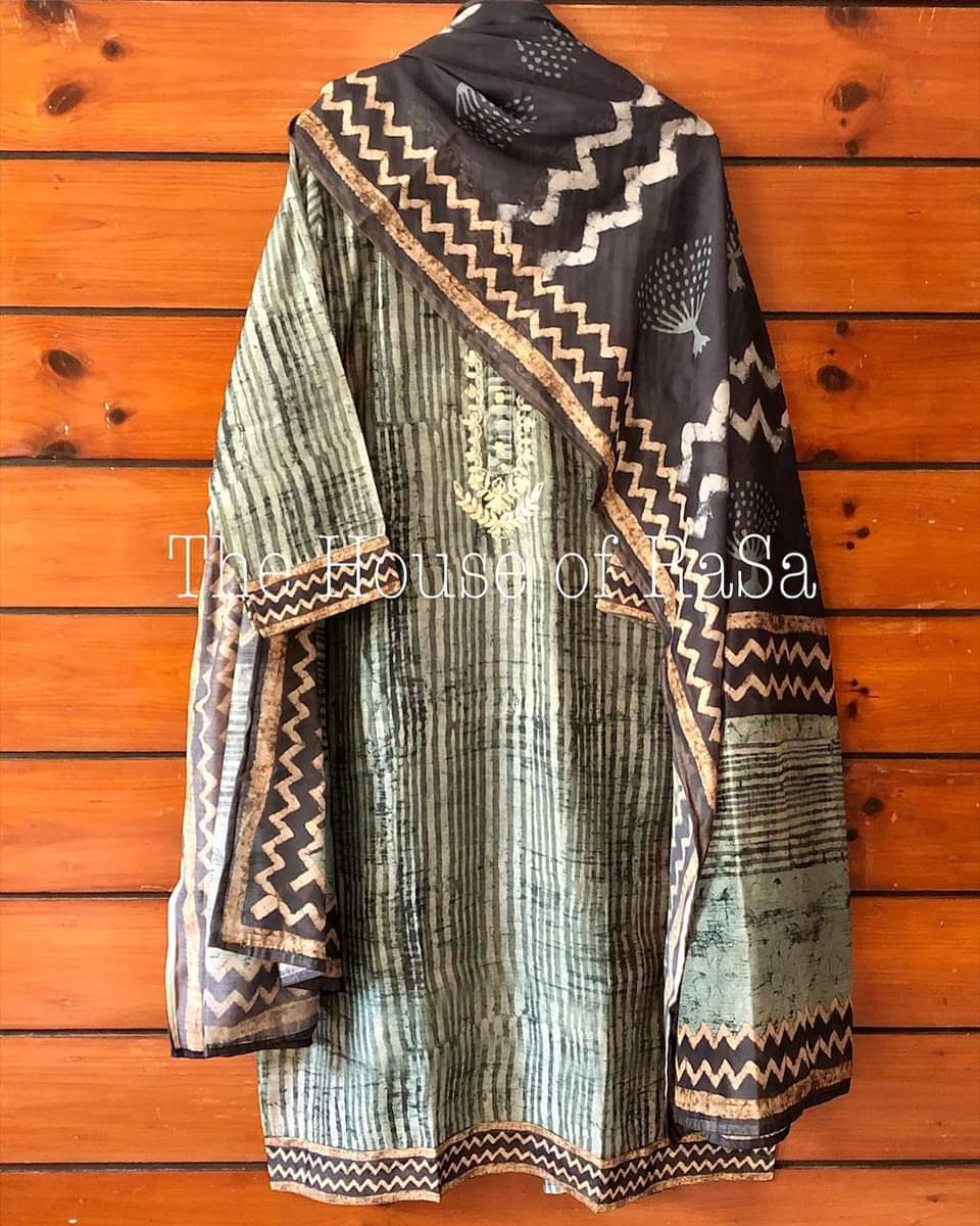 Hansika , Pure Modal Silk Ajrakh Hand Block Printed Suits with Duppatta with Tassels-DEEP001SSH