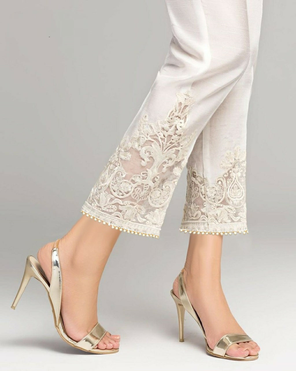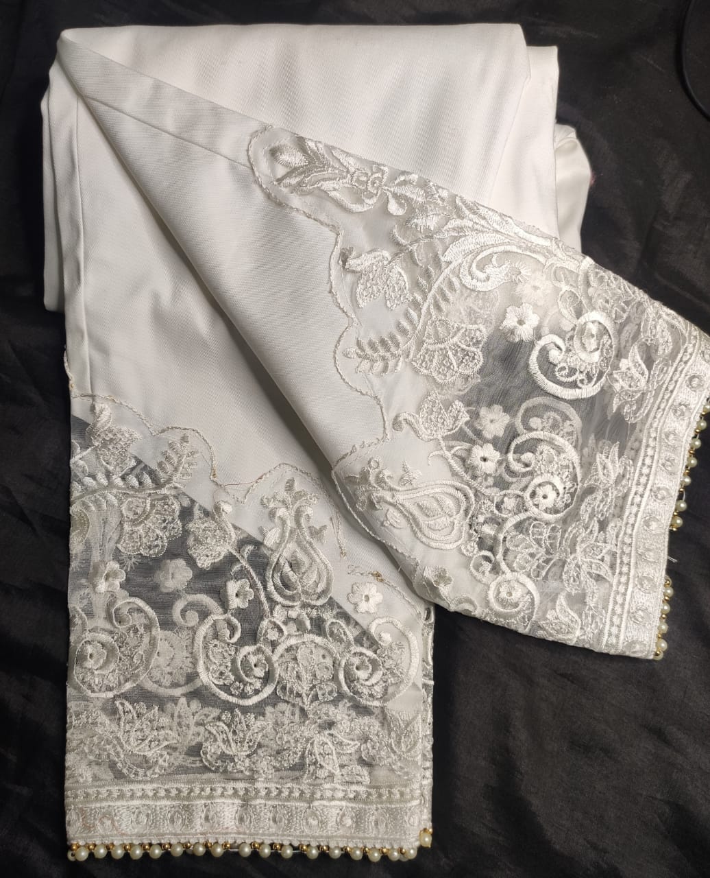 Chikankari Karachi Raymond cotton strechable pant with organza and Pearl Border-CHR3001