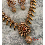 TRADITIONAL MATTE GOLD FINISH TEMPLE NECKLACE SET WITH YELOW STONES FOR WOMEN