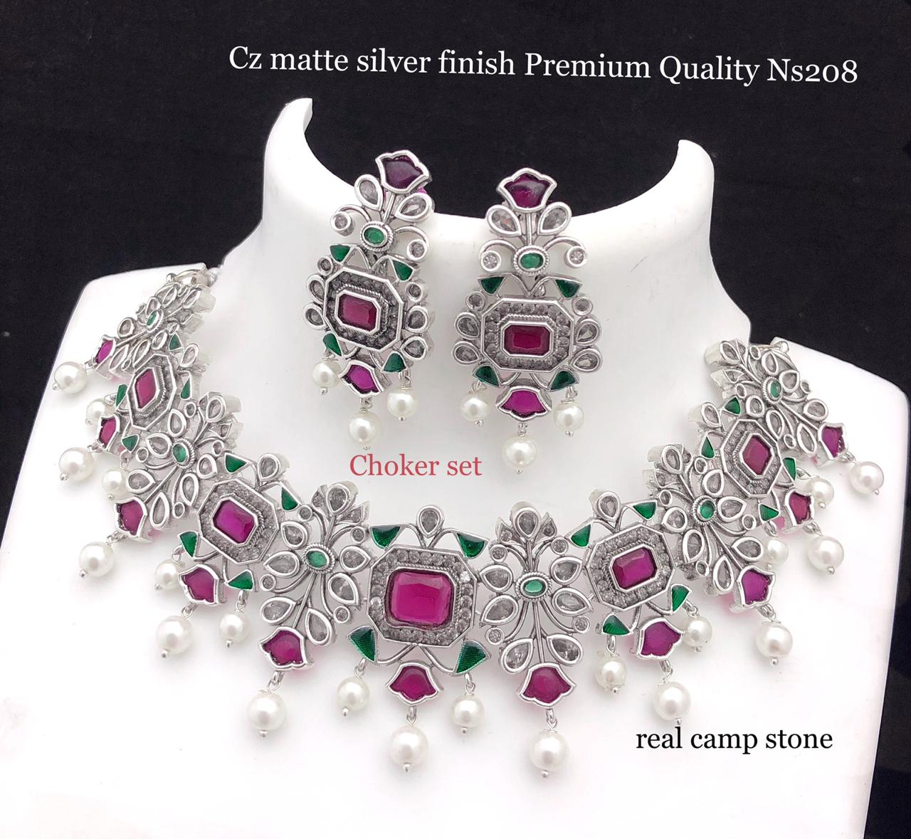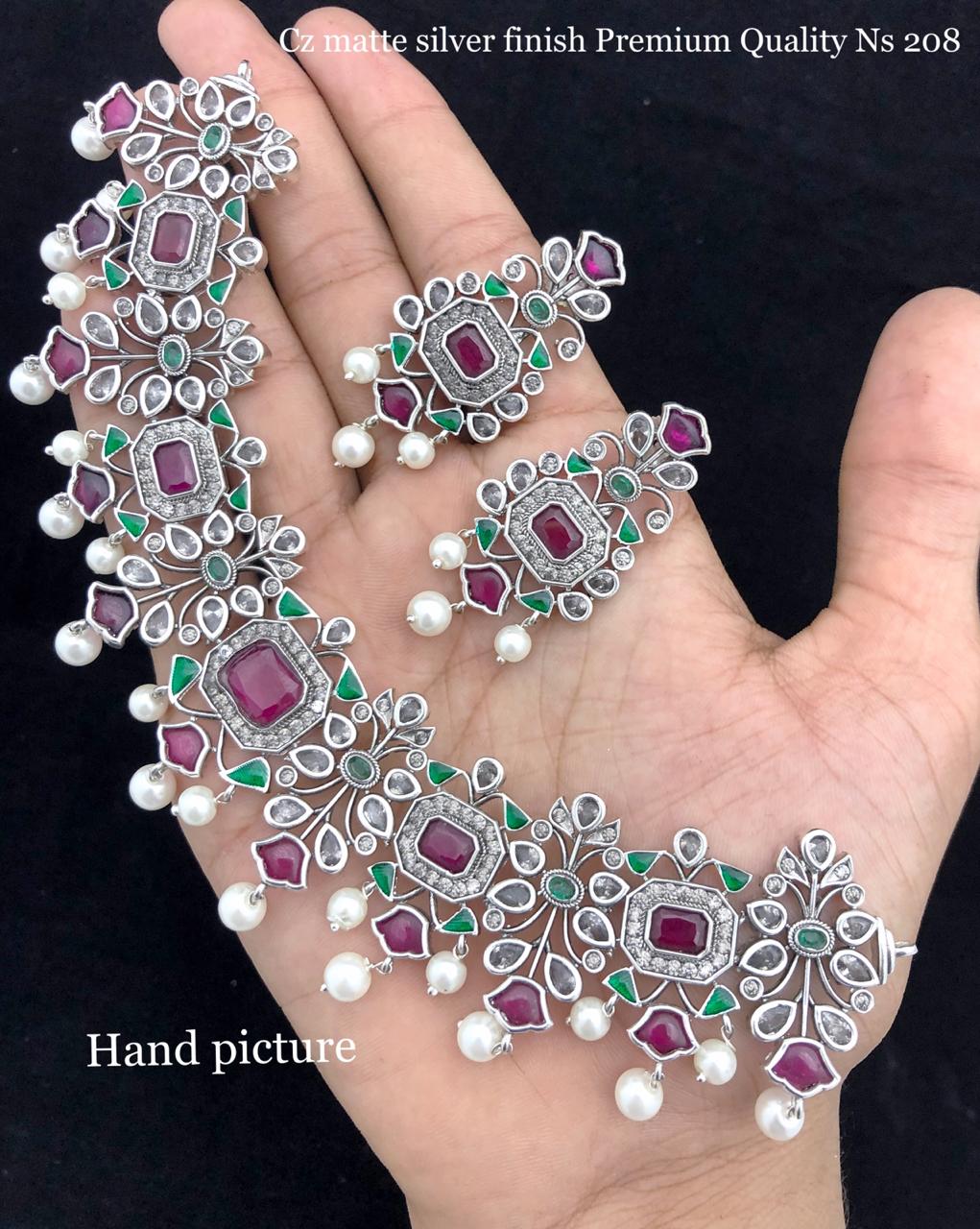 PREMIUM QUALITY SILVER FINISH KEMP NECKLACE SET FOR WOMEN
