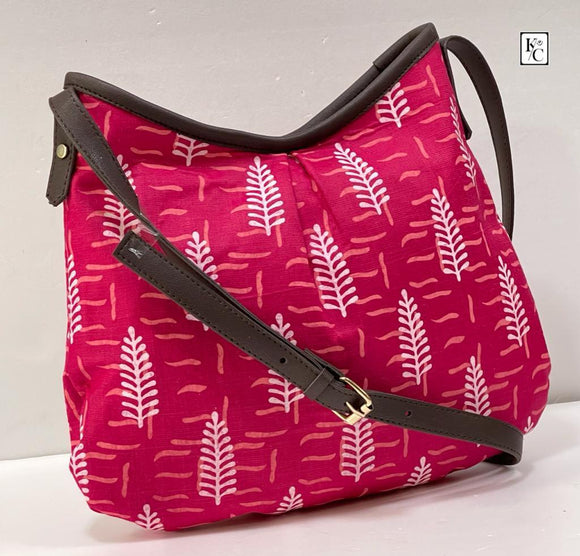 PINK DESIGN PRINTED ZIPPER IKAT SLING BAG FOR WOMEN -SKESL001P