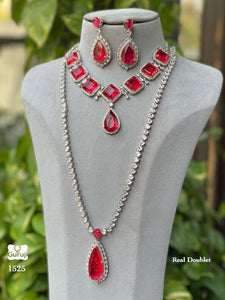 Red  Daisy, Elegant Platinum finish Double Layered Necklace set for women -SANY001DNR