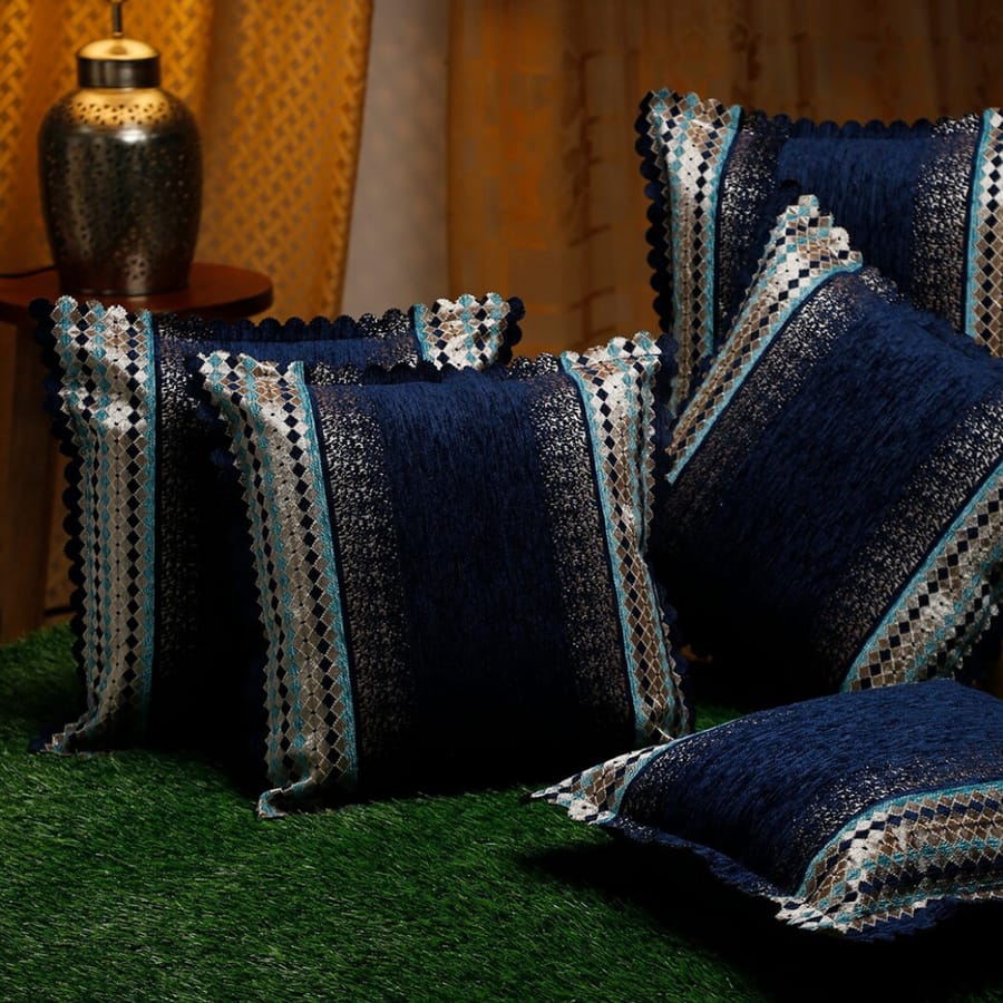 Blue shade Glitter  Set of 5 Cushion Covers-DEEP001CCBL