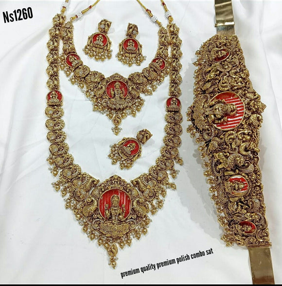 SAWBAGYA, PREMIUM QUALITY MATTE GOLD FINISH BRIDAL LAYERED NECKLACE SET FOR WOMEN -ARTNS001BLN