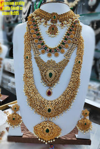 Sawbagya,Set of 4 Bridal Necklace Set for Women with matching pair of matte Gold finish Earrings
