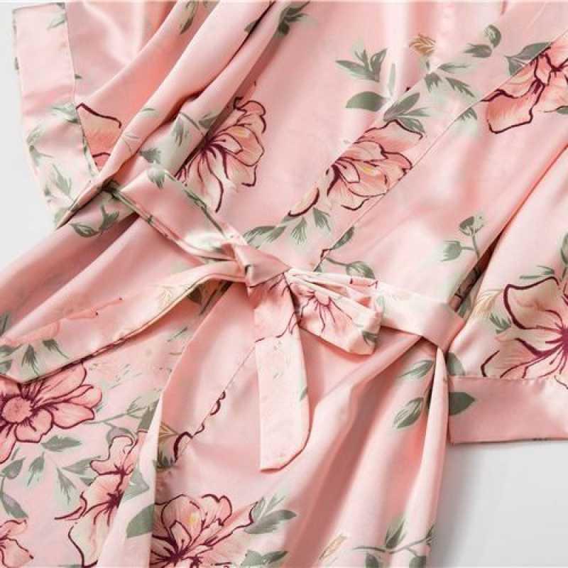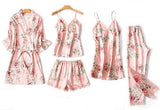 Dotted prints and floral 5pcs Night Suit Set for WomenSuper soft smooth satins