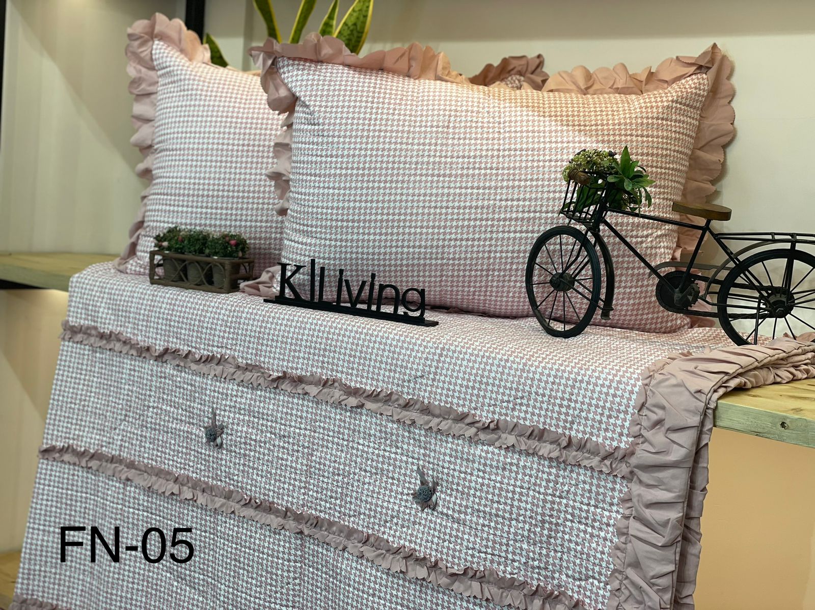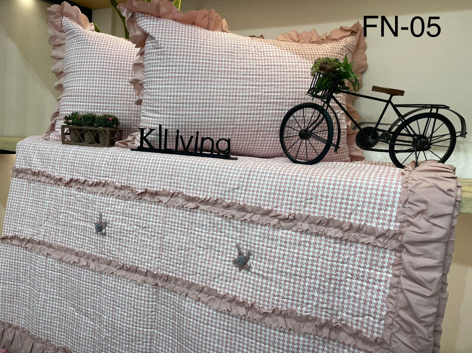 FUSION, ONION PINK COLOR BED COVER WITH FRILLS AND HANDMADE FLOWERS -PREETF001OP