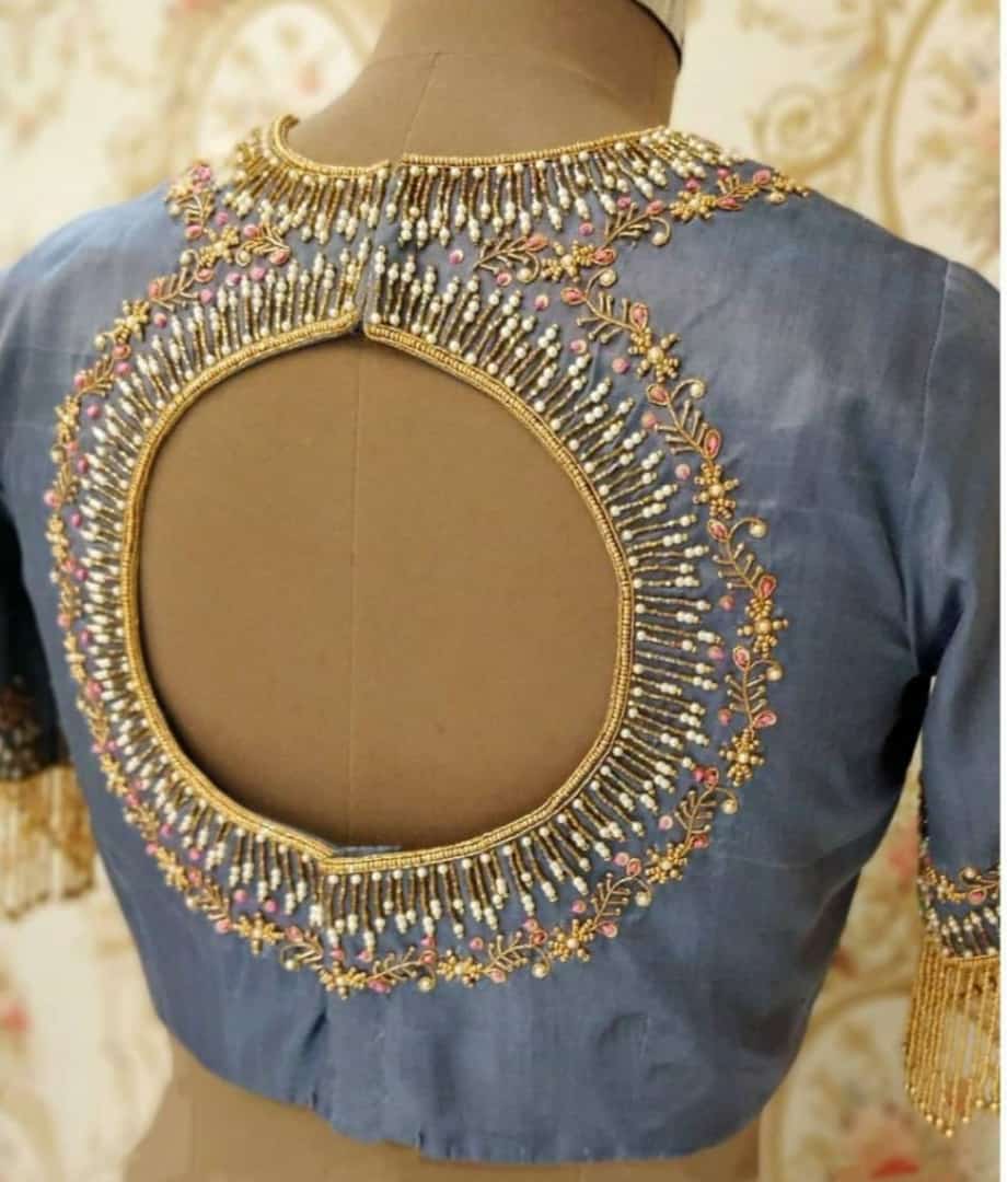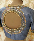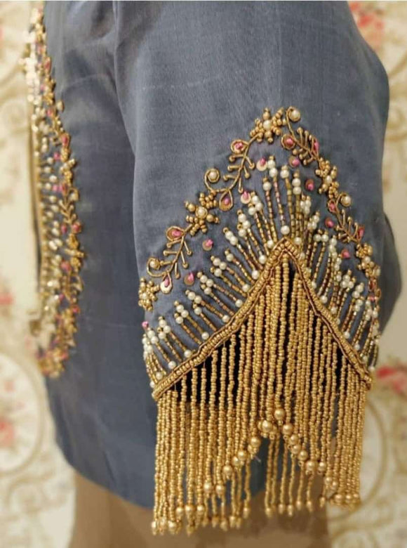 SHIVANI , GREY CUSTOMIZABLE HEAVY WORK STITCHED BLOUSE WITH BEAD HANGINGS FOR WOMEN -TANI001GR