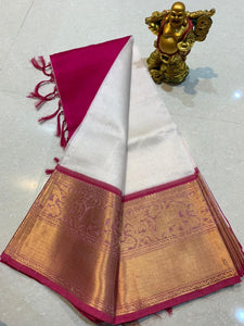 WHITE & MAROON MANGALGIRI PURE SILK SAREE FOR WOMEN-DGMGPS001WM