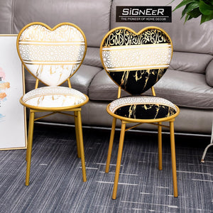 MODERN FASHION NORDIC MINIMALIST COFFEE CAFE CHAIR LOVE HEART SHAPE BACKREST FLANNELETTE SOFT SEAT METAL IRON ART LEISURE CHAIR