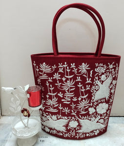 MAROON SHADE ELEGANT EMBROIDERED SILK HAND BAGS FOR WOMEN -RG001SBM
