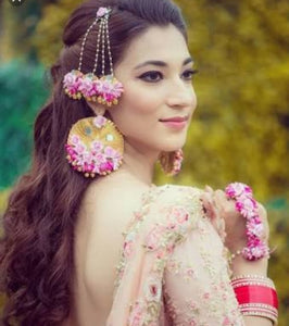 Pink Simple Bridal Flower jewellery set for Bride for Mehandi /Haldi