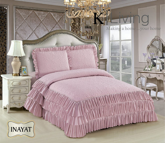* ITEM NAME - INAYAT* Uniquely designed quilted bedcover that comes with Three layers Skrit Frills (20 inches ) all around the bedcover