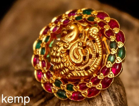 Padmarani , Gold Finish Green stone studded Designer Finger Ring for women -JAYDU001GR