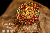 Mrinalini , elegant Gold Finish Statement Green Kundan Finger Ring for women -JAYDU001FR