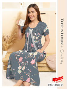 Grey Luxury Premium Quality Rayon Twisted Cotton Long Nighty for women -LIFE001LNC