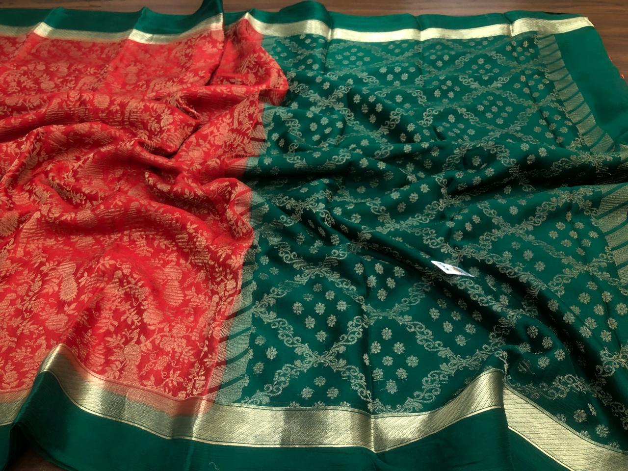 Manikya , Red and Green Pure Mysore Silk Saree for women -PRIYA001MSA