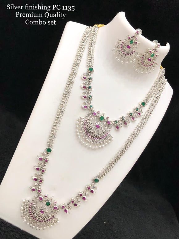 MANJU, SILVER FINISH PREMIUM QUALITY COMBO LONG HAARAM/LONG NECKLACE AND SHORT NECKLACE SET FOR WOMEN -ARTSNSW001M