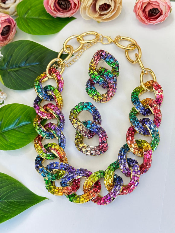 Elevate your style with our Rainbow Martina Premium Luxury Colored Stone Necklace Set for Women. Expertly crafted with a vibrant mix of colored stones, this set adds a touch of elegance to any outfit. With its premium quality, it's the perfect addition to your jewelry collection.