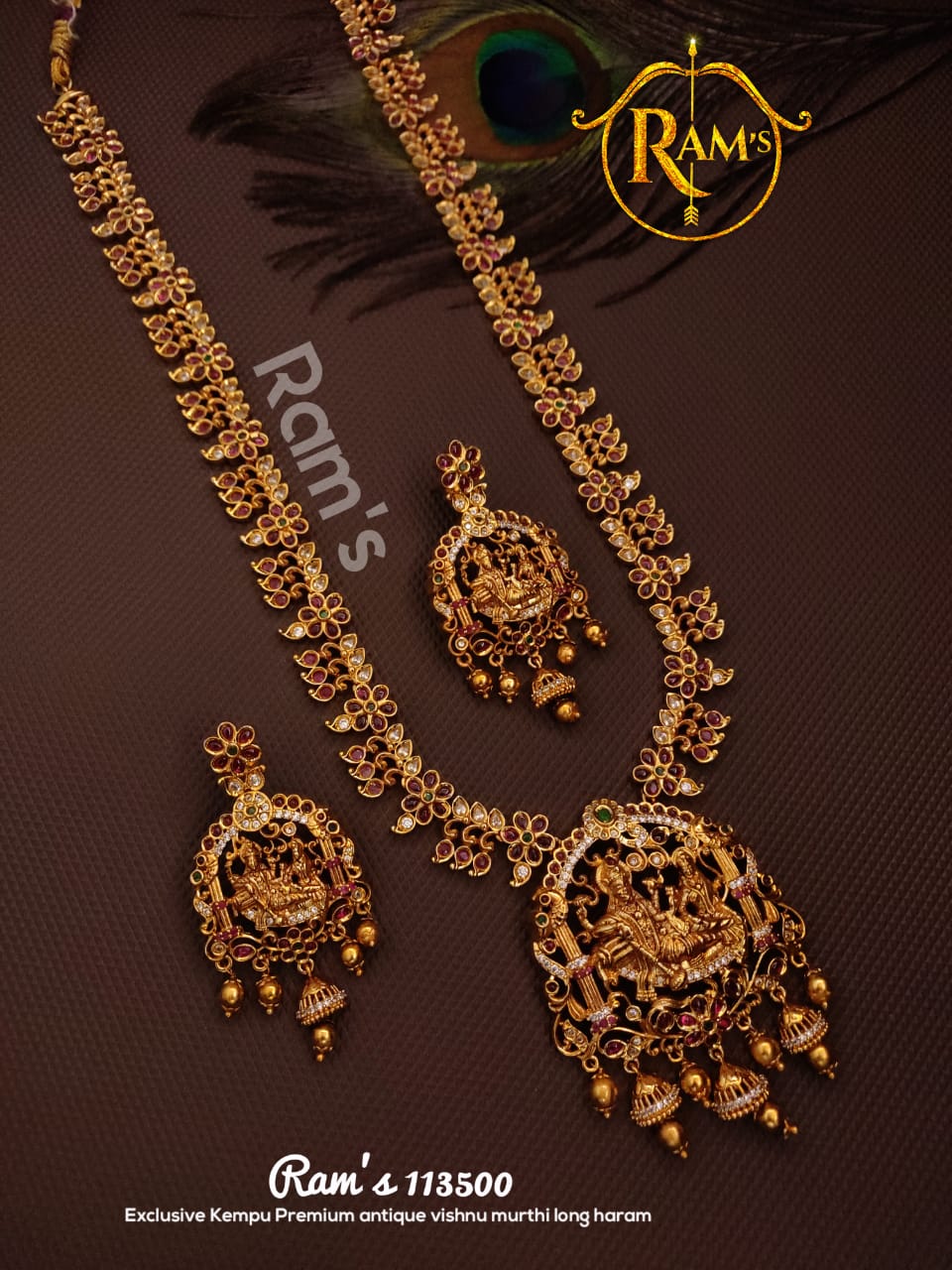 EXCLUSIVE KEMP PREMIUM ANTIQUE FINISH VISHNU MURTHY LONG HAARAM /LONG NECKLACE SET FOR WOMEN