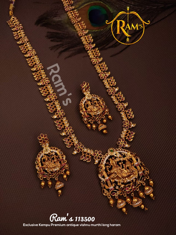 EXCLUSIVE KEMP PREMIUM ANTIQUE FINISH VISHNU MURTHY LONG HAARAM /LONG NECKLACE SET FOR WOMEN -HIMNS001VM