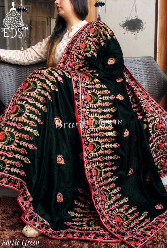 BOTTLE GREEN COLOR PREMIUM QUALITY VELVET SHAWL /DUPPATTA FOR WOMEN -RGVSW001BG