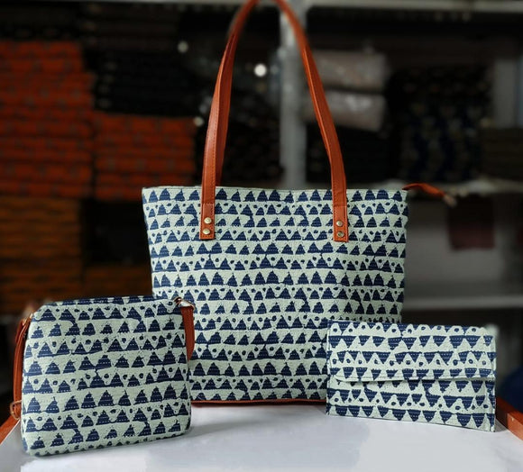 BLUE AND WHITE NAOMI, 3 PCS COMBO IKAT BAGS FOR WOMEN-JCIBC001BW