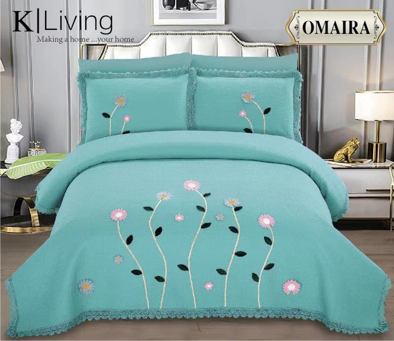 BLUE OMAIRA, NEW RANGE OF LUXURY BEDCOVERS WITH PILLOW CASES-GIRIBC001B
