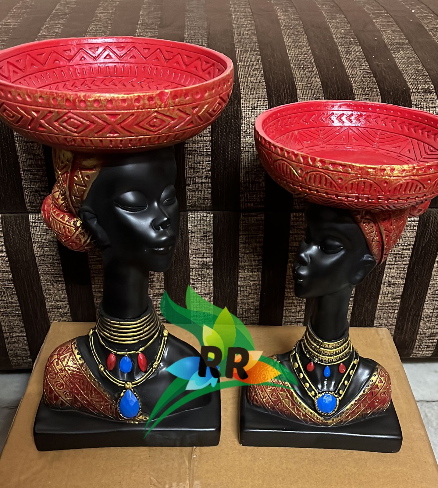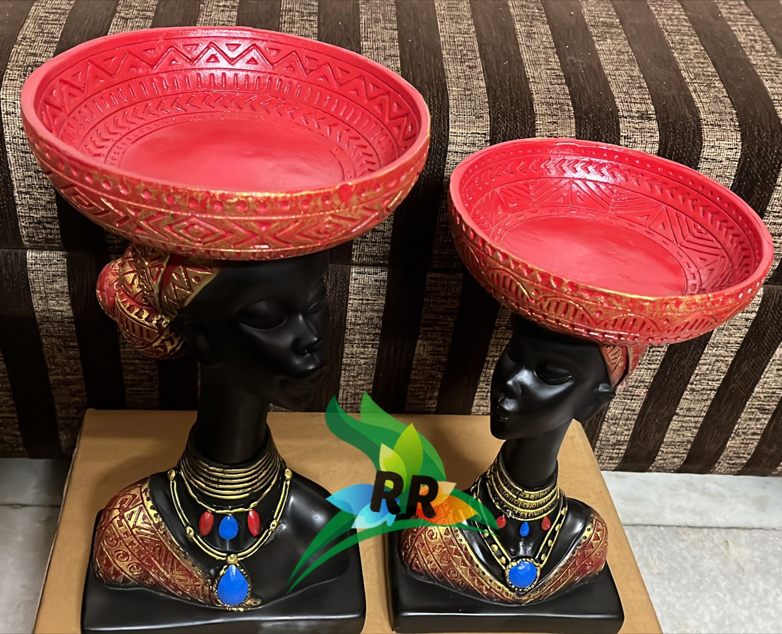 Pair of Black beauties with red round bowls used for keeping accessories-SKD001RP