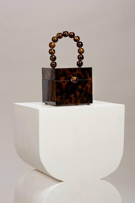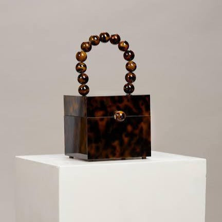 WOODEN FINISH  LUXURIOUS RESIN CUBICAL CLUTCH BAG  WITH PEARL HANDLE-JCRCC001W