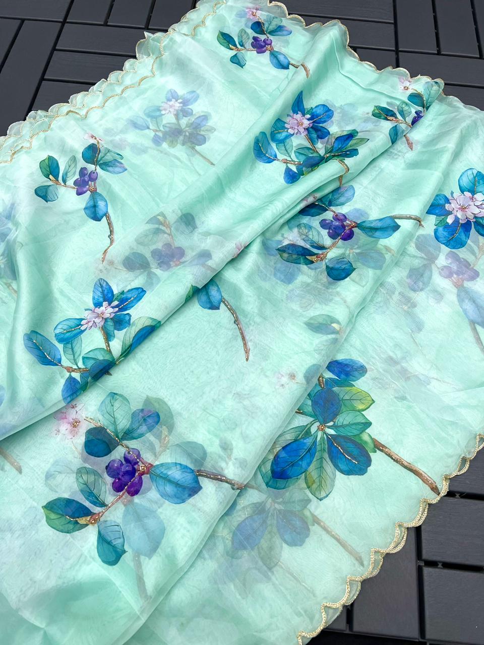 Pastel Green Shade Organza Handwork Saree for Women-SSS001POPG