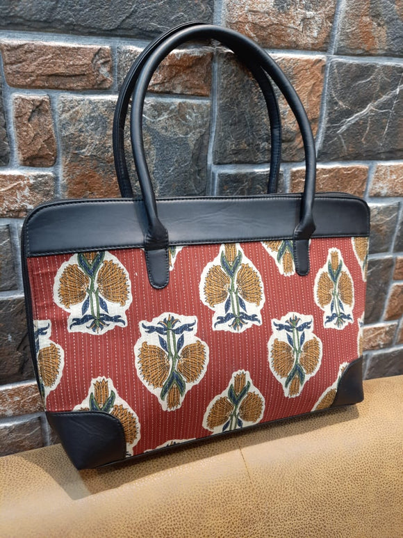 RED , Exclusive and Stylish Handmade Weightless Zipped HandBag for Women-SARALTBW001
