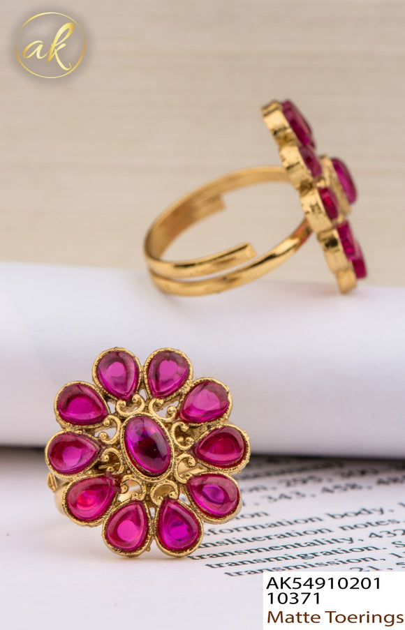 URVASHI , GOLD FINISH BRIDAL PINK KEMP TOE RINGS FOR WOMEN -BTKTW001U