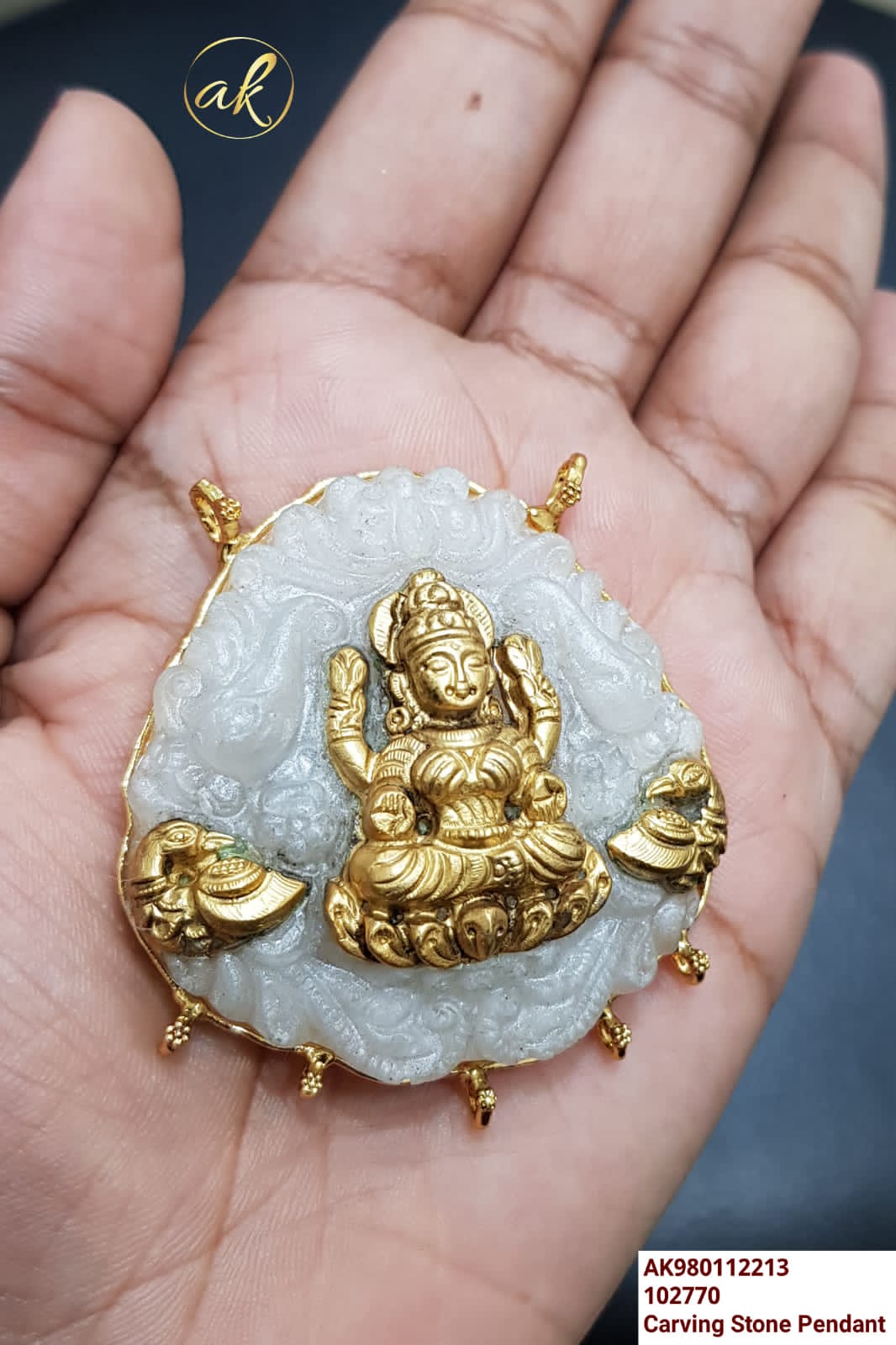 White Shade Carved Stone Statement Pendant with Goddess Lakshmi for Women -LR001CSPW