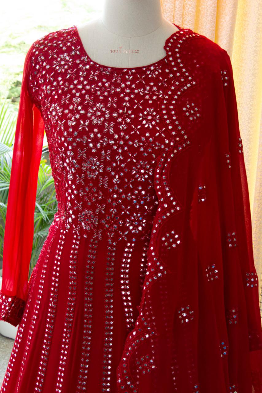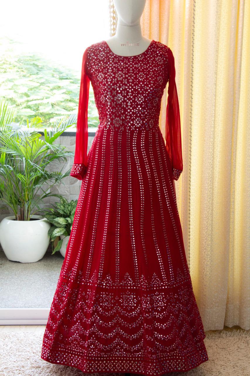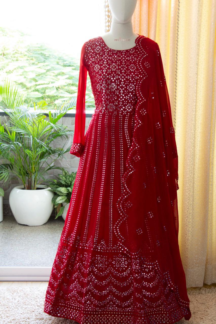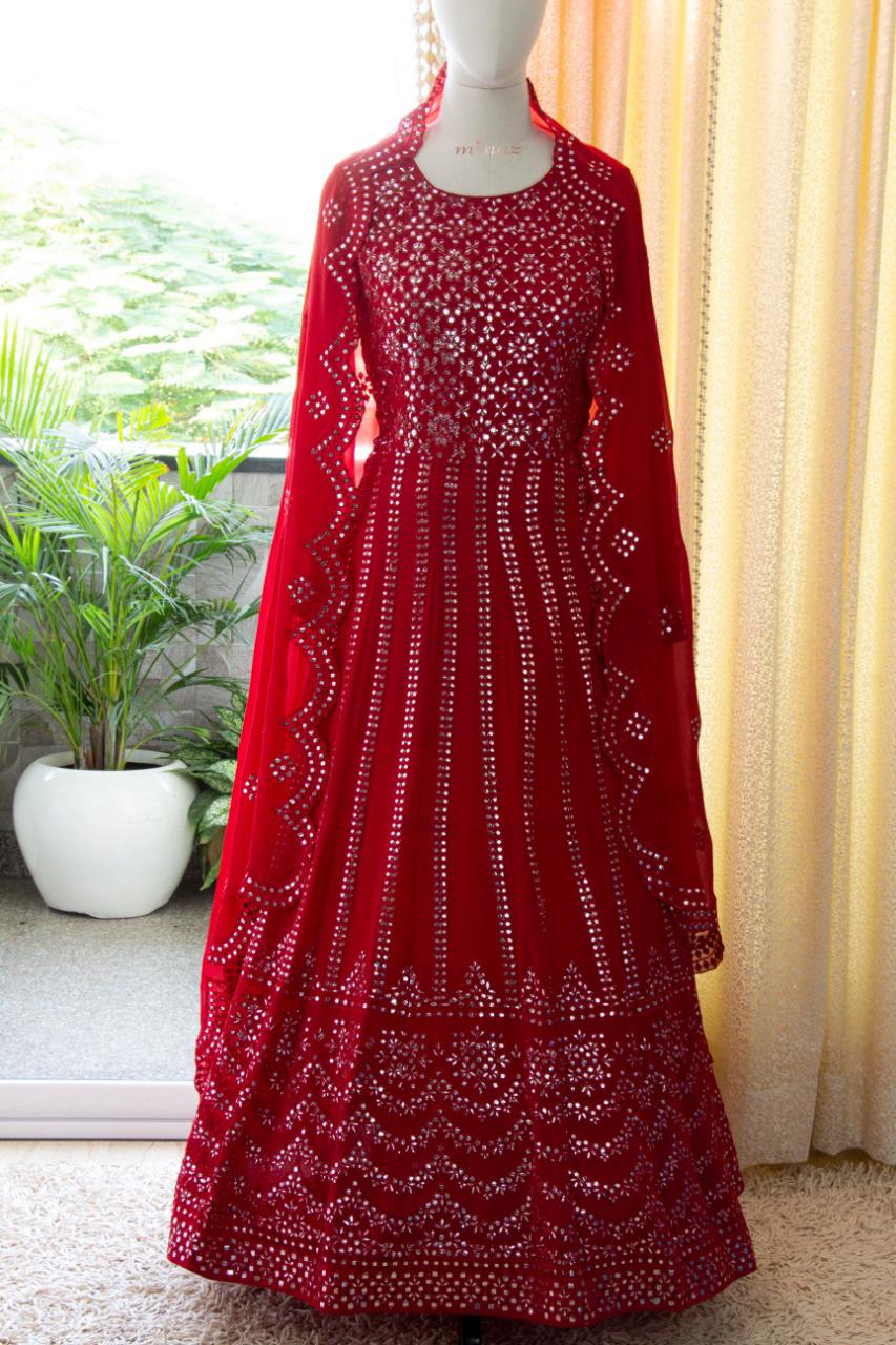 READY TO WEAR RED SHADE GEORGETTE GOWN WITH DUPPATTA-RIDA001R