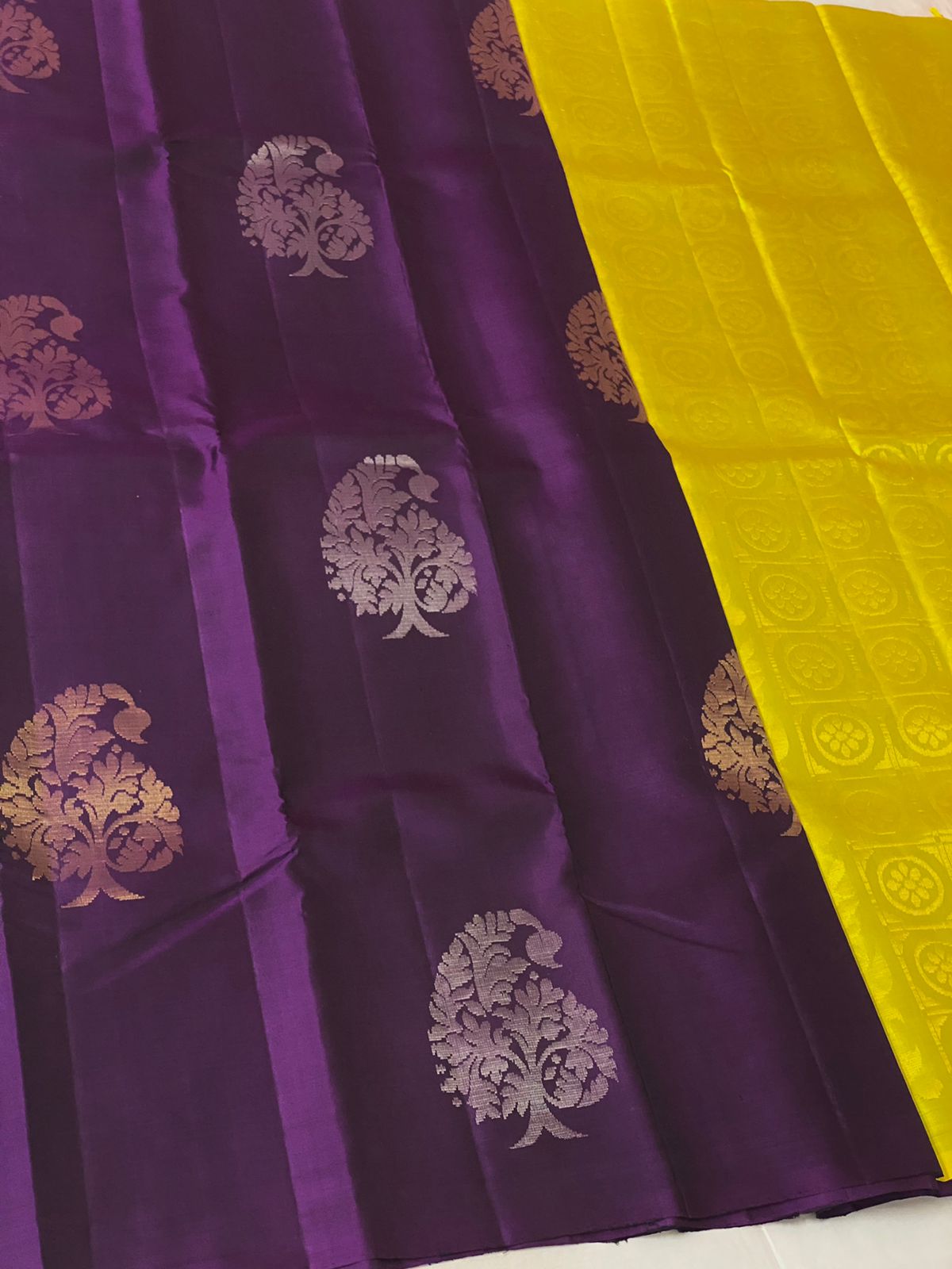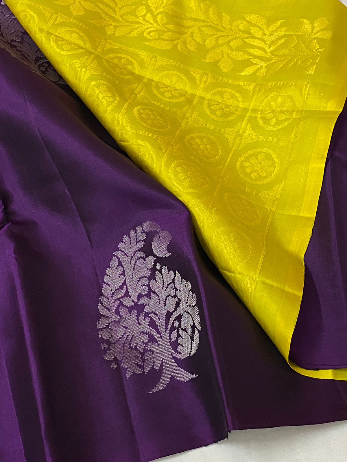 VIJAYATHA , YELLOW AND PURPLE SHADE SOFT SILK KANJEEVARAM SAREE FOR WOMEN -PRIY001YP
