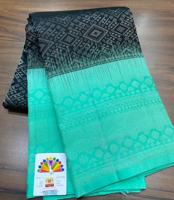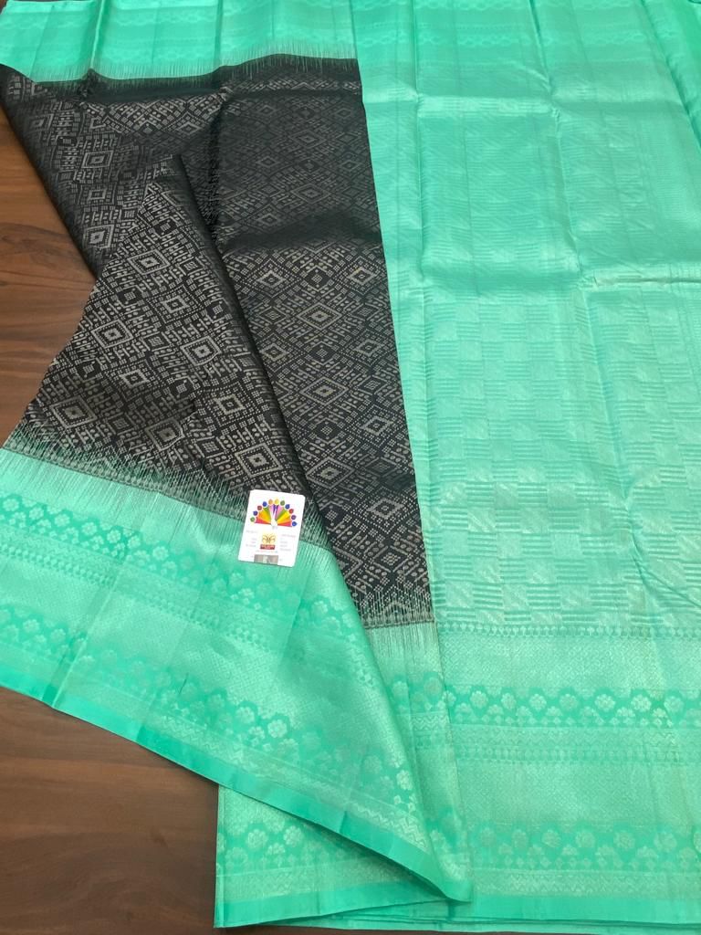 PURE KANCHI HANDLOOM SOFT SILK SAREE WITH ALLURING RICH PALLU- CUTE MOTIFS ALLOVER  AND  BLOUSE