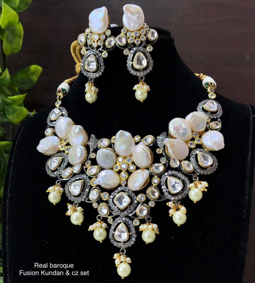 FUSION KUNDAN BAROQUE DESIGNER NECKLACE SET FOR WOMEN