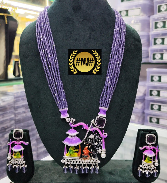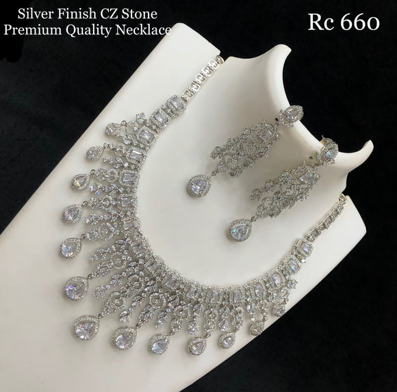 silver finish white stone studded Cz stone premium quality necklace set for women