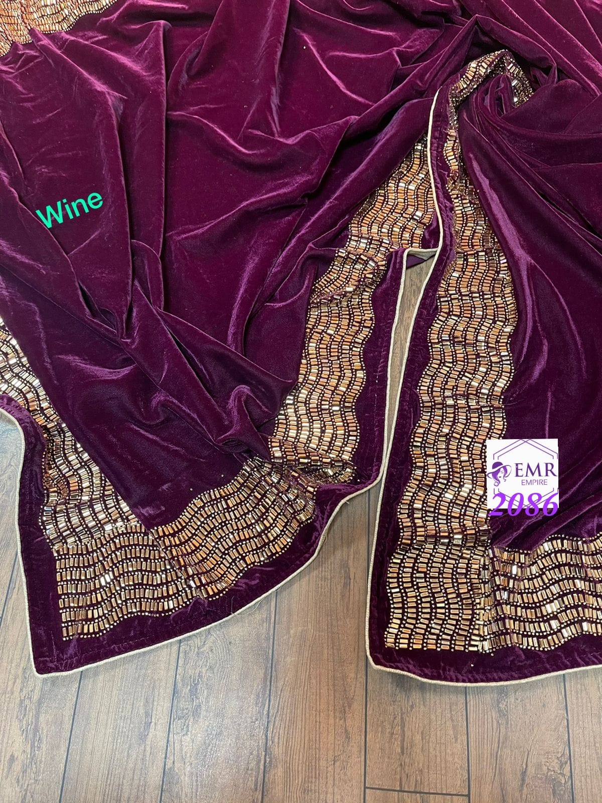 Presenting you all the beautiful heavy fine velvet shawl with heavy stone work