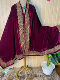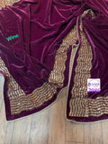 GRAPEWINE DESIGNER VELVET DUPATTA WITH HEAVY STONE WORK FOR WOMEN -ANKI001VDGW