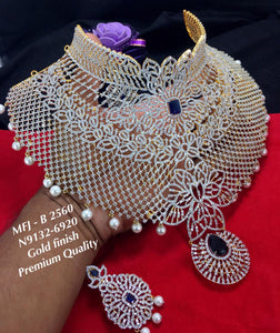 NEELA VIJAYATHA, PREMIUM QUALITY BLUE SAPHYR AMERICAN DIAMOND GOLD FINISH NECKLACE SET FOR WOMEN -VCNSW001B