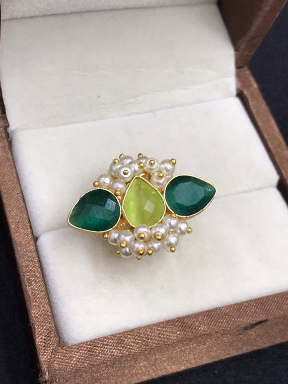 SHADES OF GREEN  DAISY  DESIGNER RING FOR WOMEN -MOEAR006