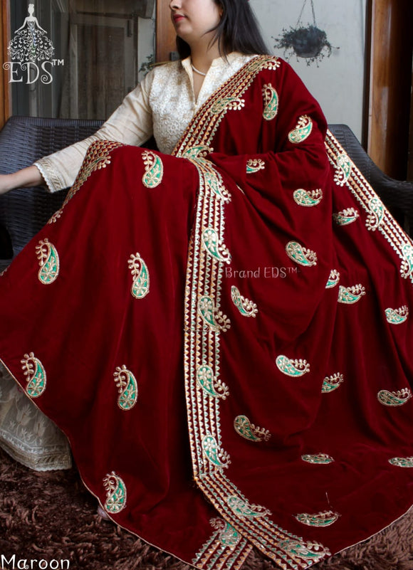 MAROON COLOR PREMIUM QUALITY VELVET SHAWL /DUPPATTA FOR WOMEN -RGVSW001MR