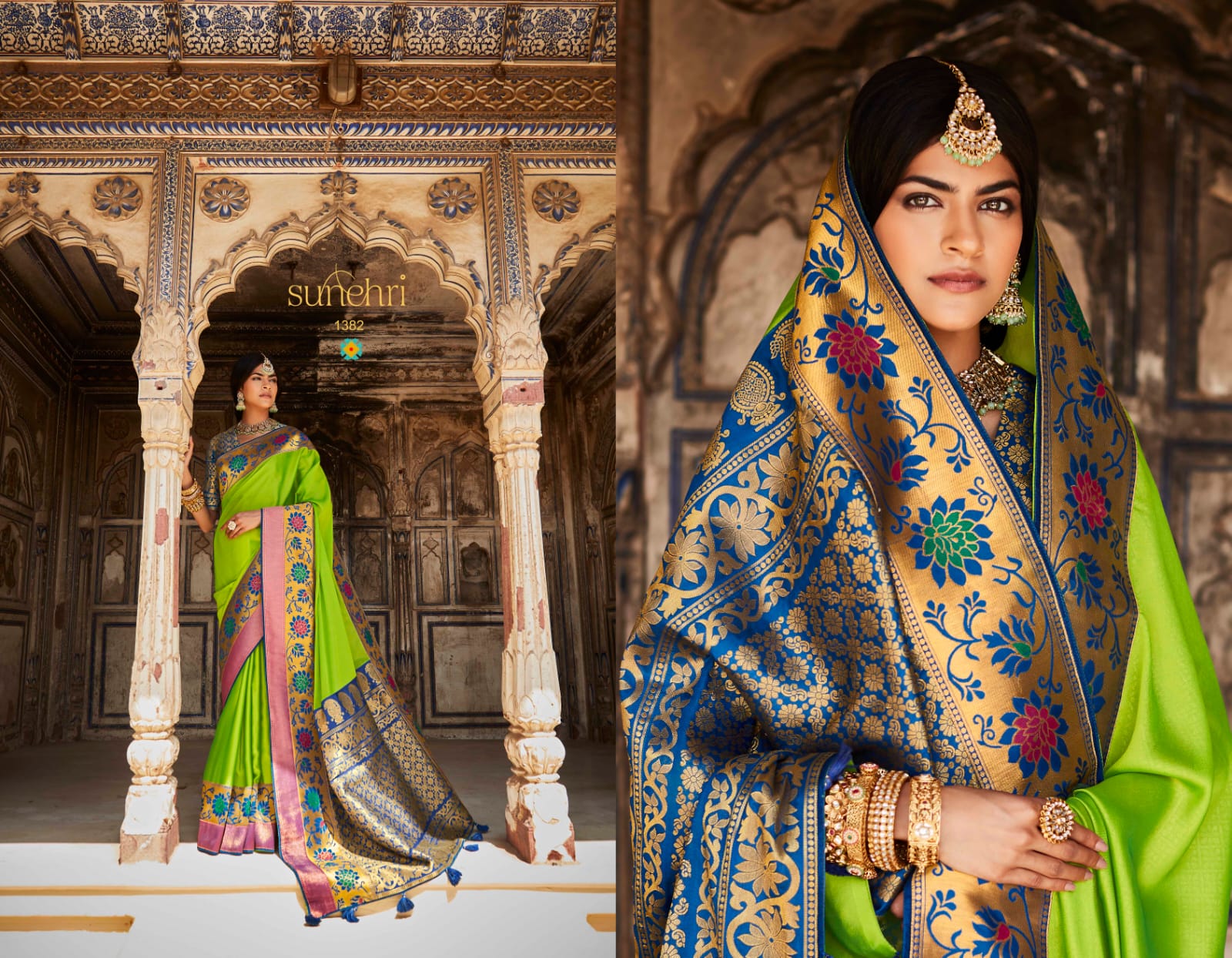 PARROT GREEN  PAITHANI SAREE WITH DESIGNER BLOUSE AND UNIQUE LATKANS-OM001PG
