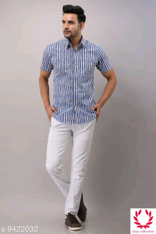 ZOYA BLUE COLOR PRINTED COTTON SHIRT FOR MEN-ZY001LBS