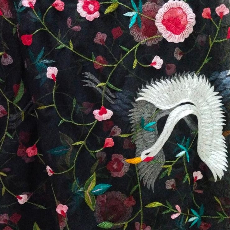 CRANE DESIGN ELEGANT HAND EMBROIDERED CONVENT WORK PARSI DUPATTA ON SOFT NET FABRIC-RG001CWPD