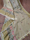 The sheer ,shiny and shimmer glass organza with delicate kaaj with knot embroidery pattern across the body and thread weaving border ,pallu tassels shows how six yards of can be absolutely decadent.