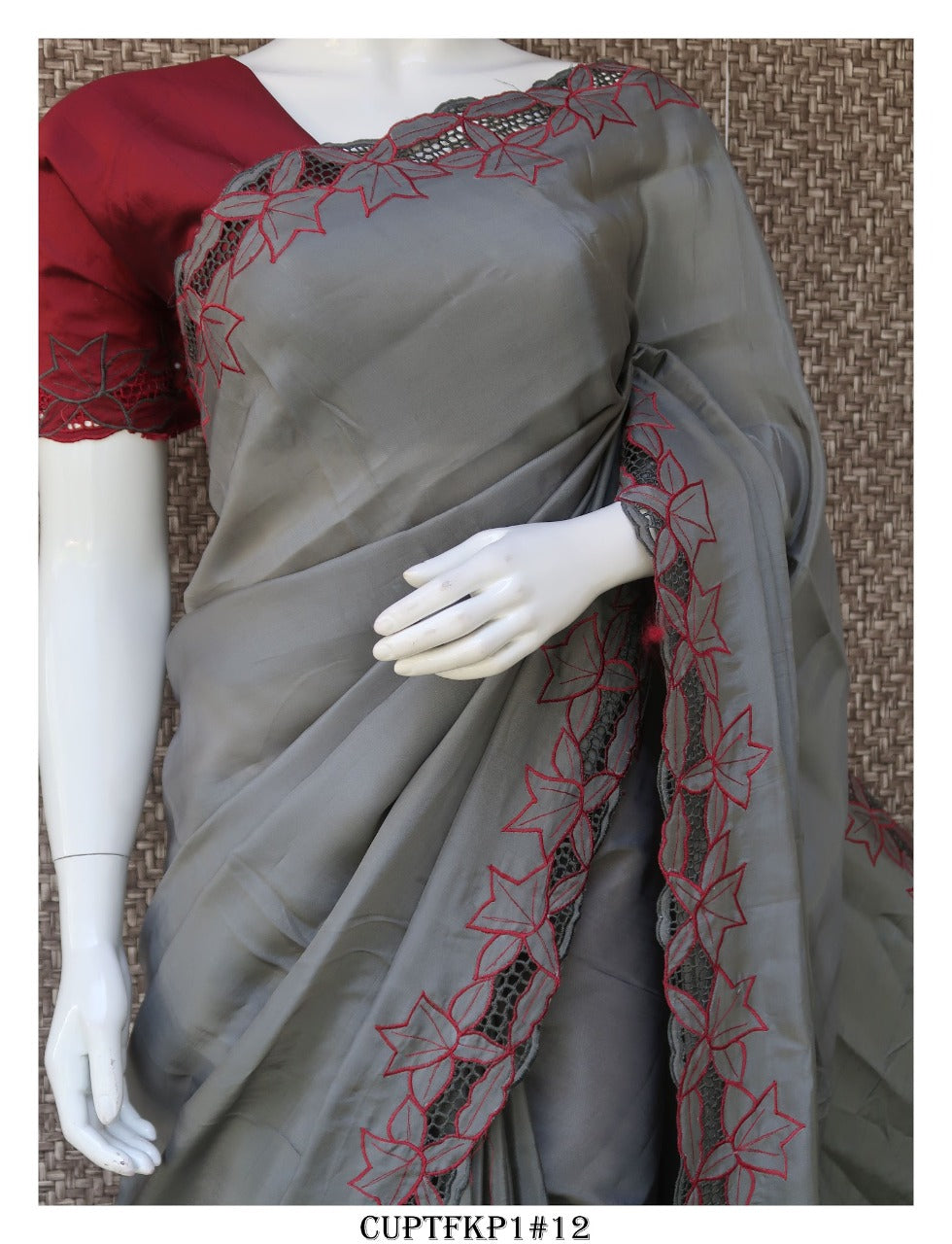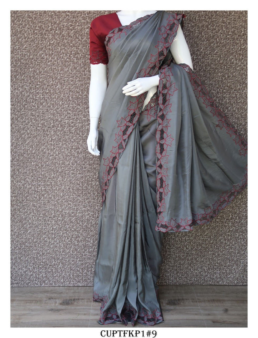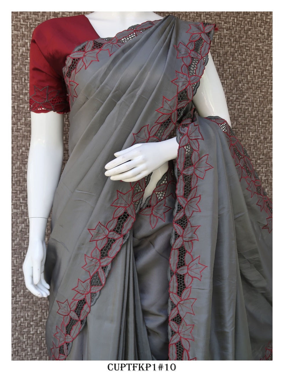 Cutwork on Uppada Silk Saree with Contrast Work and Blouse Piece-KIA001USSCW