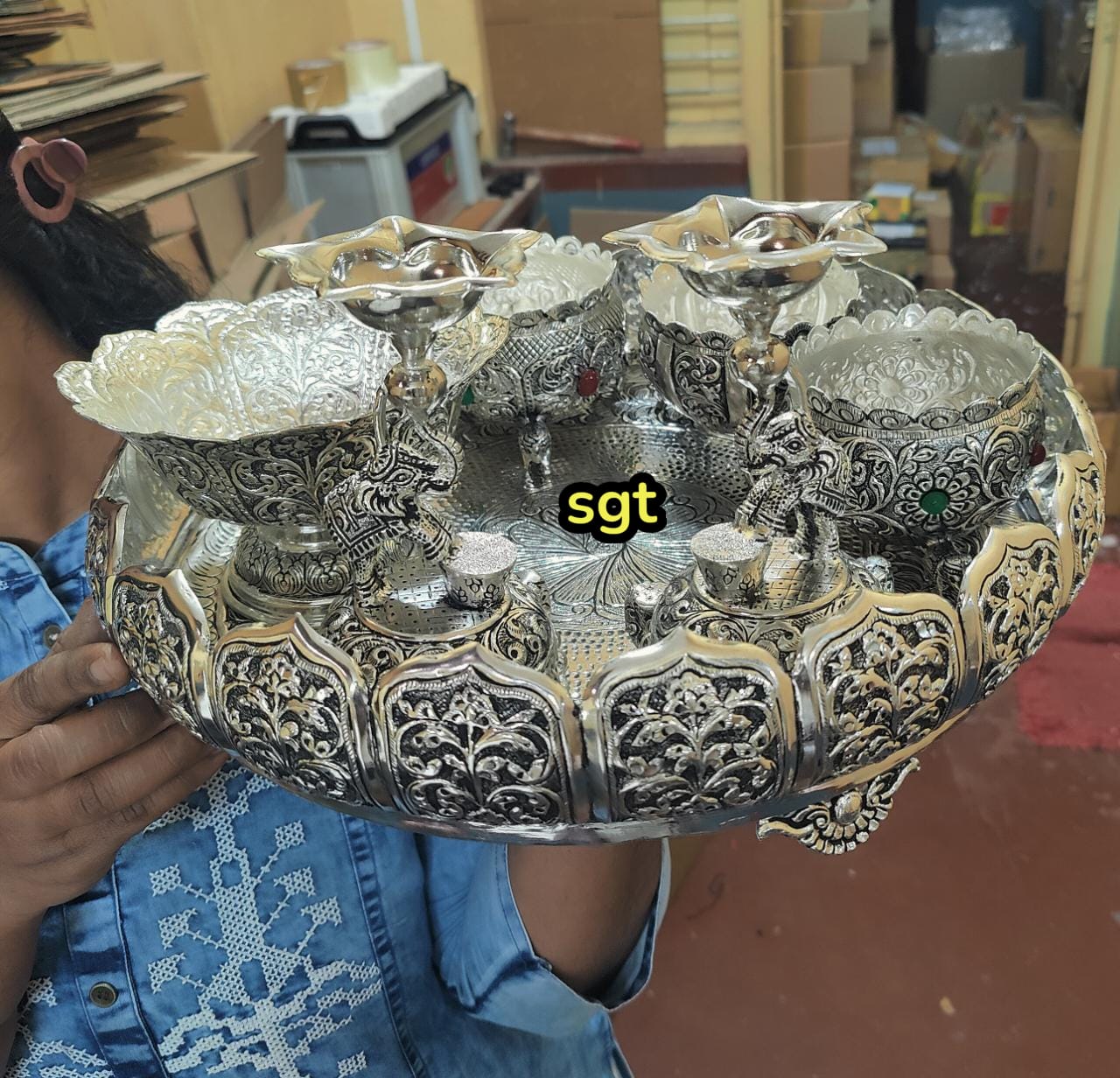 Full set impressive Antique Finish German Silver washable and Kamala Plate